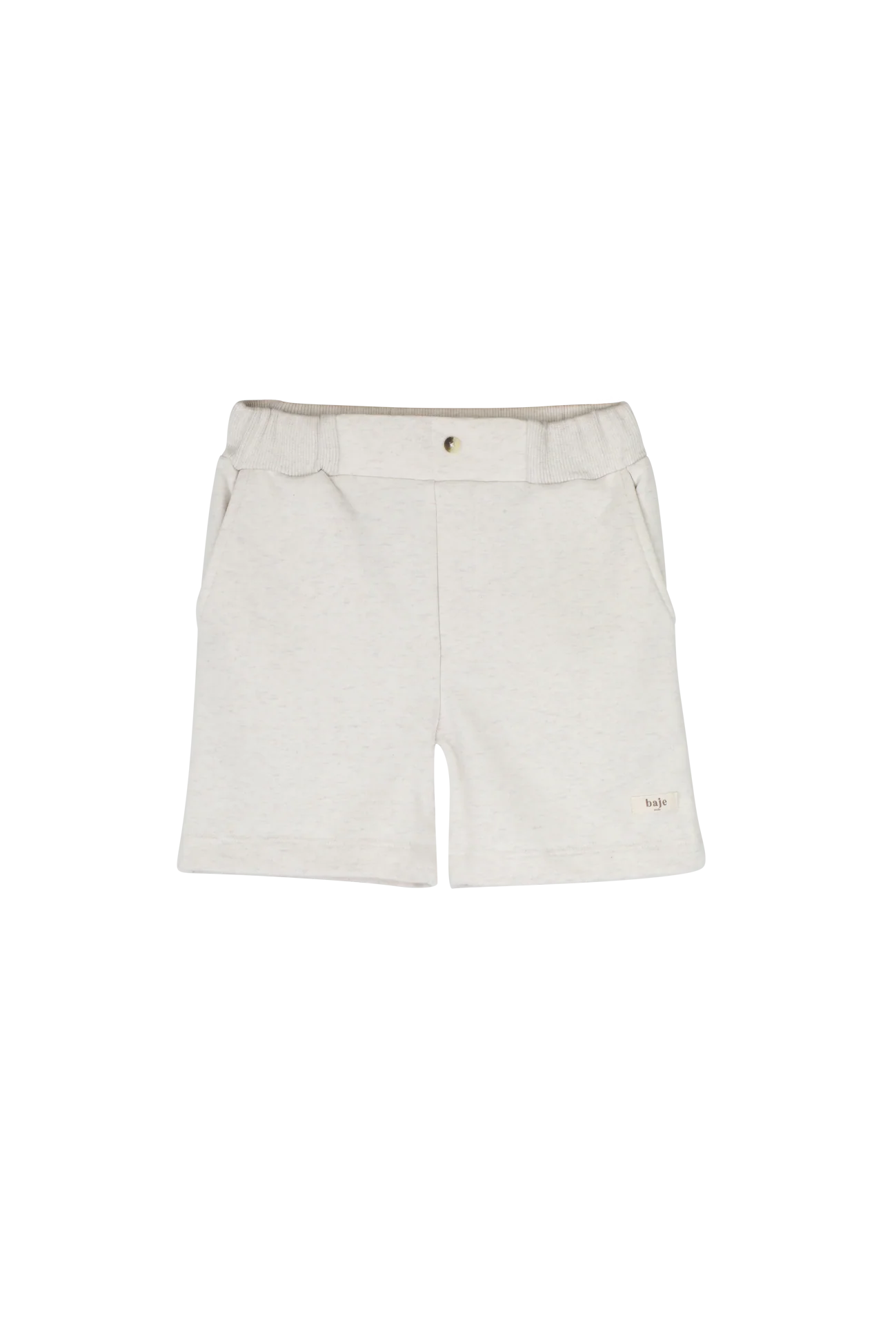 Basic sweat short boys Deze comfortabele short is een perfecte combinatie van eenvoud en verfijning. De zachte, lichte tint geeft een rustige en tijdloze uitstraling, terwijl de soepele sweatstof zorgt voor optimaal draagcomfort. De elastische tailleband sluit mooi aan en beweegt moeiteloos mee tijdens het spelen en ontdekken. Het subtiele knoopdetail en het minimalistische label geven de short een stijlvolle finishing touch.Een veelzijdig item dat ideaal te combineren is met een T-shirt, sweater of hoodie voor een complete, ontspannen look. Zachte katoenkwaliteit Verkrijg in creme en goed te combineren met de styles: ballen, Najera of Alfaro Makkelijk en comfortabele pasvorm Moeiteloos te combineren, dit kan werkelijk bij alles Voor iedere actieve jongen, maar ook goed draagbaar tijdens nette gelegenheden