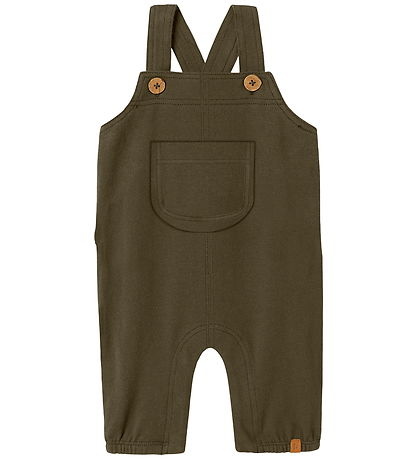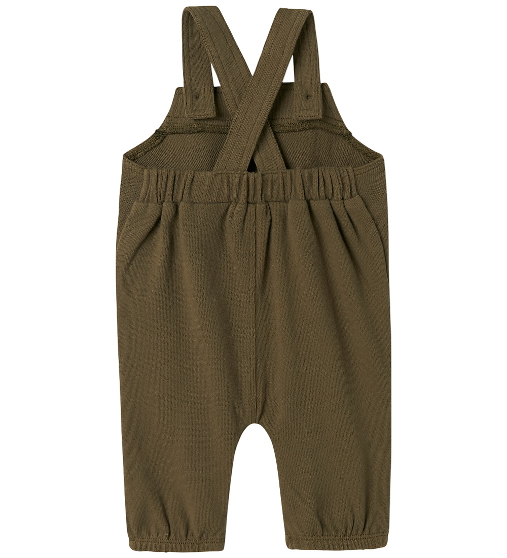 Stijlvolle tuinbroek van Lil' Atelier in een diepe olijfgroen tint.