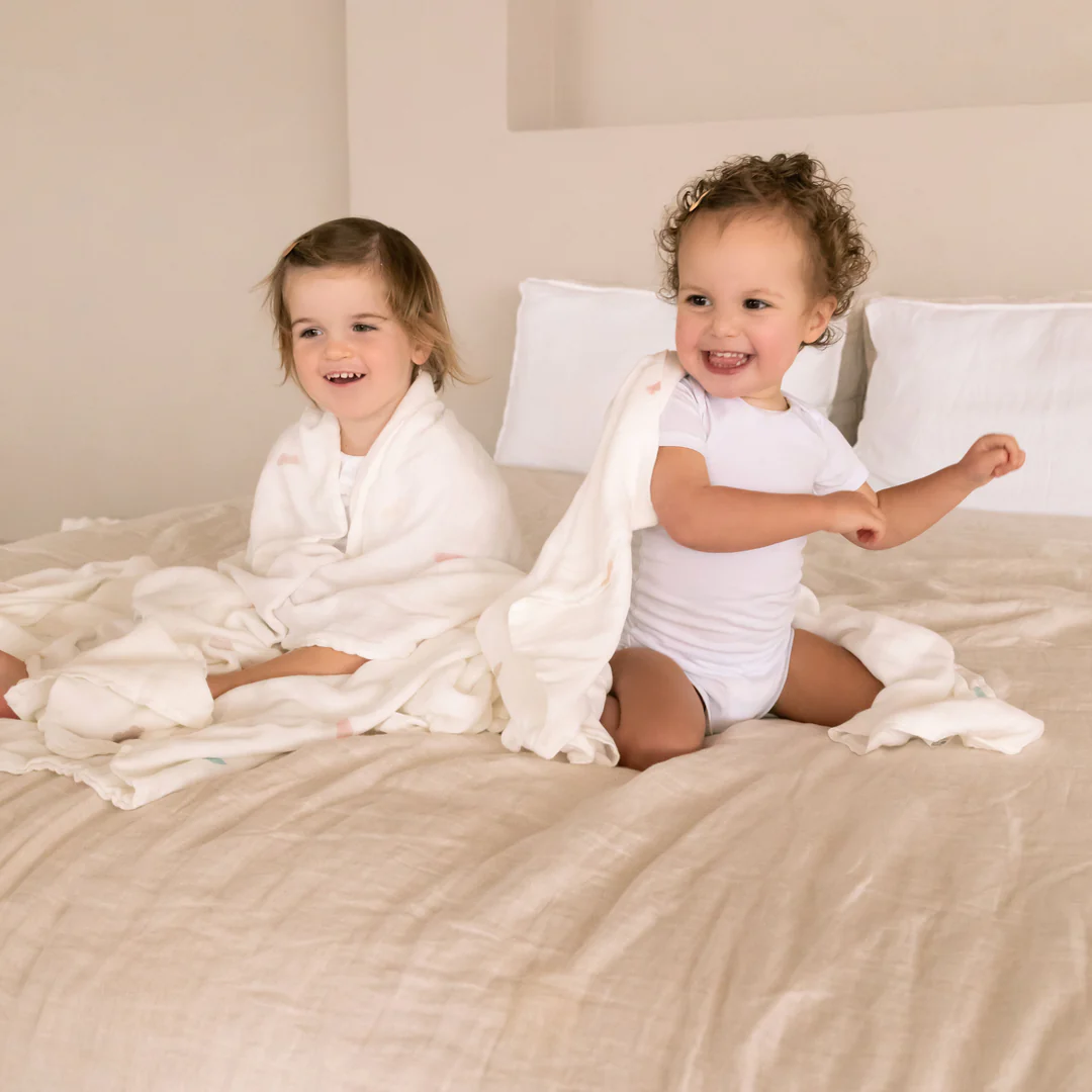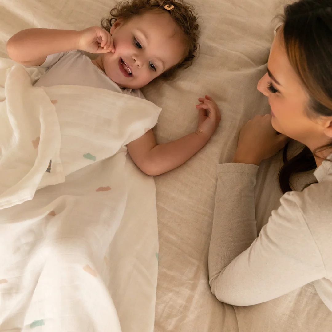 In samenwerking met lieve mama Demi de Boer heeft Sweet Little Crown een hydrofiele doek ontworpen met kleine wolkjes. The Cloud Medium is een middelgrote hydrofiele witte doek met een design van wolkjes in diverse zachte vintage kleuren. De hydrofiele doeken van Sweet Little Crown zijn gemaakt van 70% organisch bamboe en 30% organisch katoen. Door de ronde bamboevezels zijn de doeken zijdezacht, ideaal voor de gevoelige babyhuid.