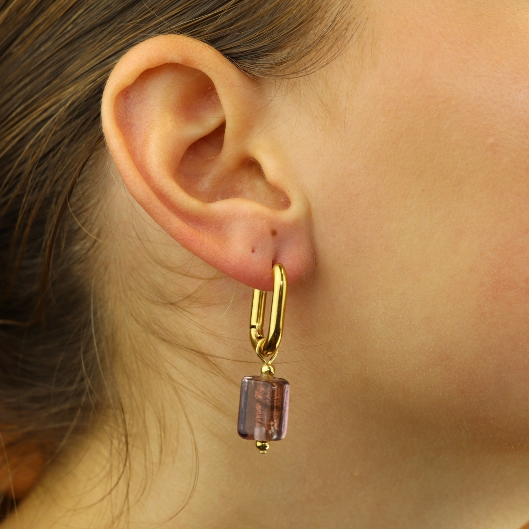 Deze oorringen hebben een prachtige paarse glaskraal en een gouden sluiting. Ze zijn perfect voor iedere gelegenheid. Of je nu een casual look wilt creëren of je outfit wilt opleuken voor een speciale gelegenheid, deze oorhangers zijn de perfecte accessoire! De oorringen zijn gemaakt van stainless steel, dus zijn waterproof en verkleuren niet!