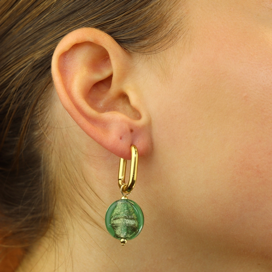 Deze oorringen hebben een prachtige groene glaskraal en een gouden sluiting. Ze zijn perfect voor iedere gelegenheid. Of je nu een casual look wilt creëren of je outfit wilt opleuken voor een speciale gelegenheid, deze oorhangers zijn de perfecte accessoire! De oorringen zijn gemaakt van stainless steel, dus zijn waterproof en verkleuren niet!