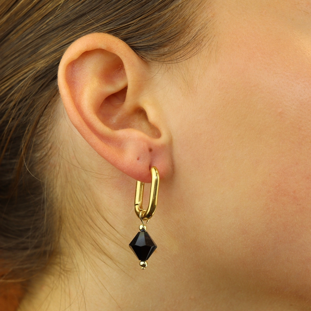 Deze oorringen hebben een prachtige zwarte glaskraal en een gouden sluiting. Ze zijn perfect voor iedere gelegenheid. Of je nu een casual look wilt creëren of je outfit wilt opleuken voor een speciale gelegenheid, deze oorhangers zijn de perfecte accessoire! De oorringen zijn gemaakt van stainless steel, dus zijn waterproof en verkleuren niet!