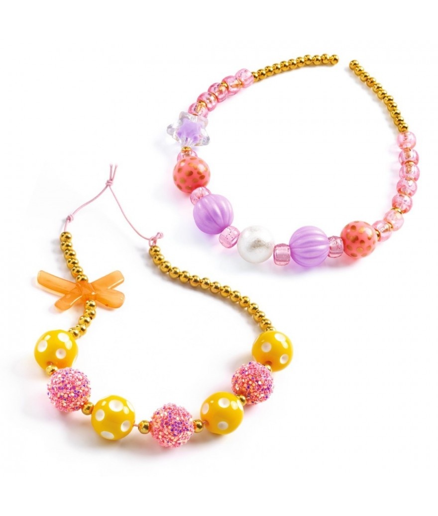 Een doos met meer dan 200 kralen om 5 kettingen te maken met goudkleurige glans. Een goed doordacht kleurenschema voor een harmonieus resultaat. Ze zullen met veel plezier gedragen worden door klein en groot!