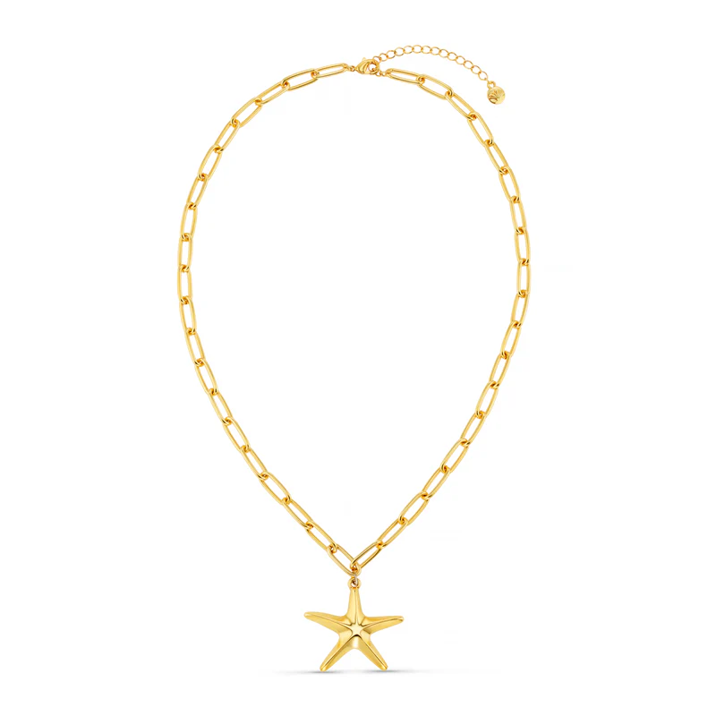 Statement Polished Starfish Chain Necklace - Pale Gold