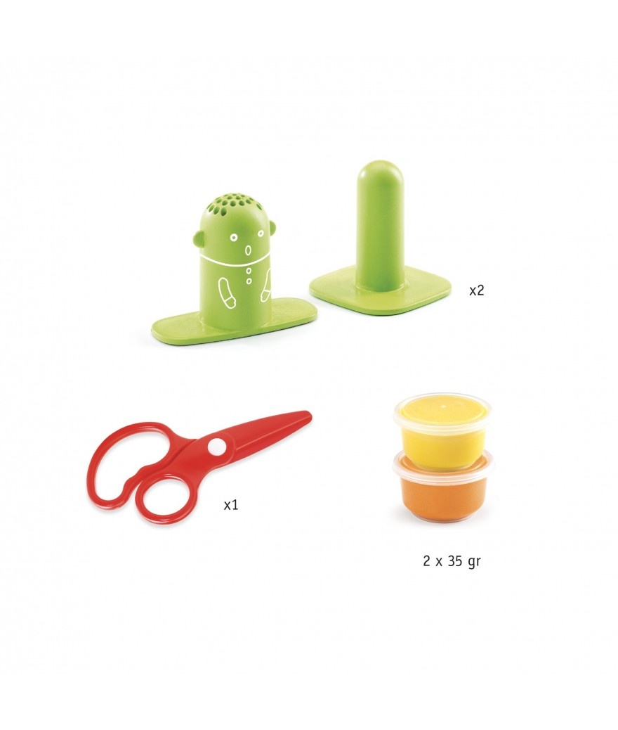 Een originele en leuke modelleeractiviteit. De kinderen spelen kappertje: ze stoppen de klei in de figuurtjes, zetten de figuurtjes op hun sokkel en drukken: het haar groeit op hun hoofd! Daarna gebruiken ze de schaar om mooie kapsels te maken!