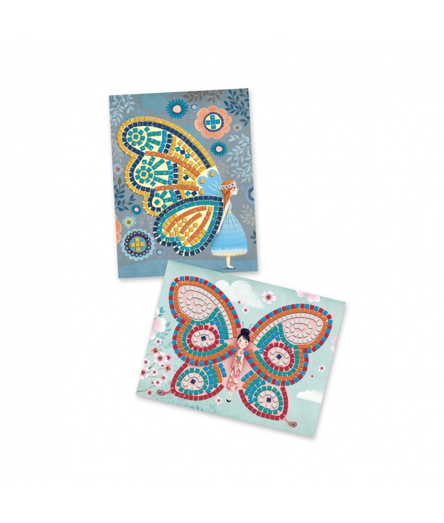 Een collage-activiteit om mozaïektekeningen te maken. Om de vleugels van de vlinderfeeën te laten glinsteren, maken kinderen de plaatjes af met de kleine vierkantjes lijm en glitterfoampapier, waarbij ze stap voor stap de instructies in het boekje volgen.