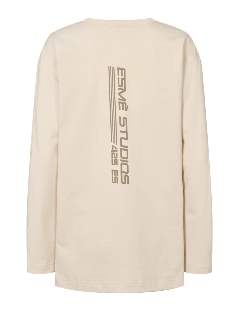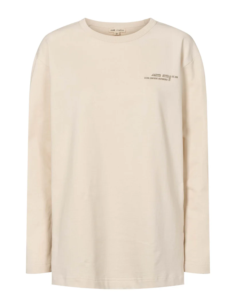 • Dit boxy T-shirt in de kleur White Sand is gemaakt van 100% biologisch katoen voor een comfortabele en duurzame feel. Het model heeft een relaxte pasvorm met lange mouwen, een ronde hals en subtiele graphic details op de borst en rug. Een tijdloze basic met een moderne, minimalistische uitstraling.