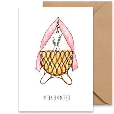 Hoera een meisje! Is er iemand in je omgeving bevallen van een meisje? Met dit lieve geboortekaartje bezorg je de kersverse ouders tijdens hun kraamperiode direct een glimlach. De gevouwen kaart word geleverd met luxe kraft envelop. De illustraties zijn handgetekend en met aquarel geschilderd door Julia Greuter. Mooie heldere kleuren, vrolijke ontwerpen met een knipoog is waar Juulz voor staat. Met haar illustraties op deze leuke kaarten bezorg je iemand zeker een glimlach op zijn gezicht.