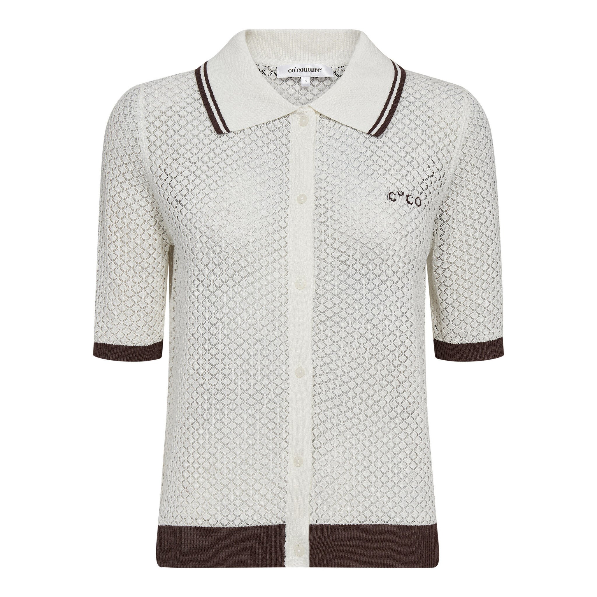 Lue Pointelle Polo Knit - Bone