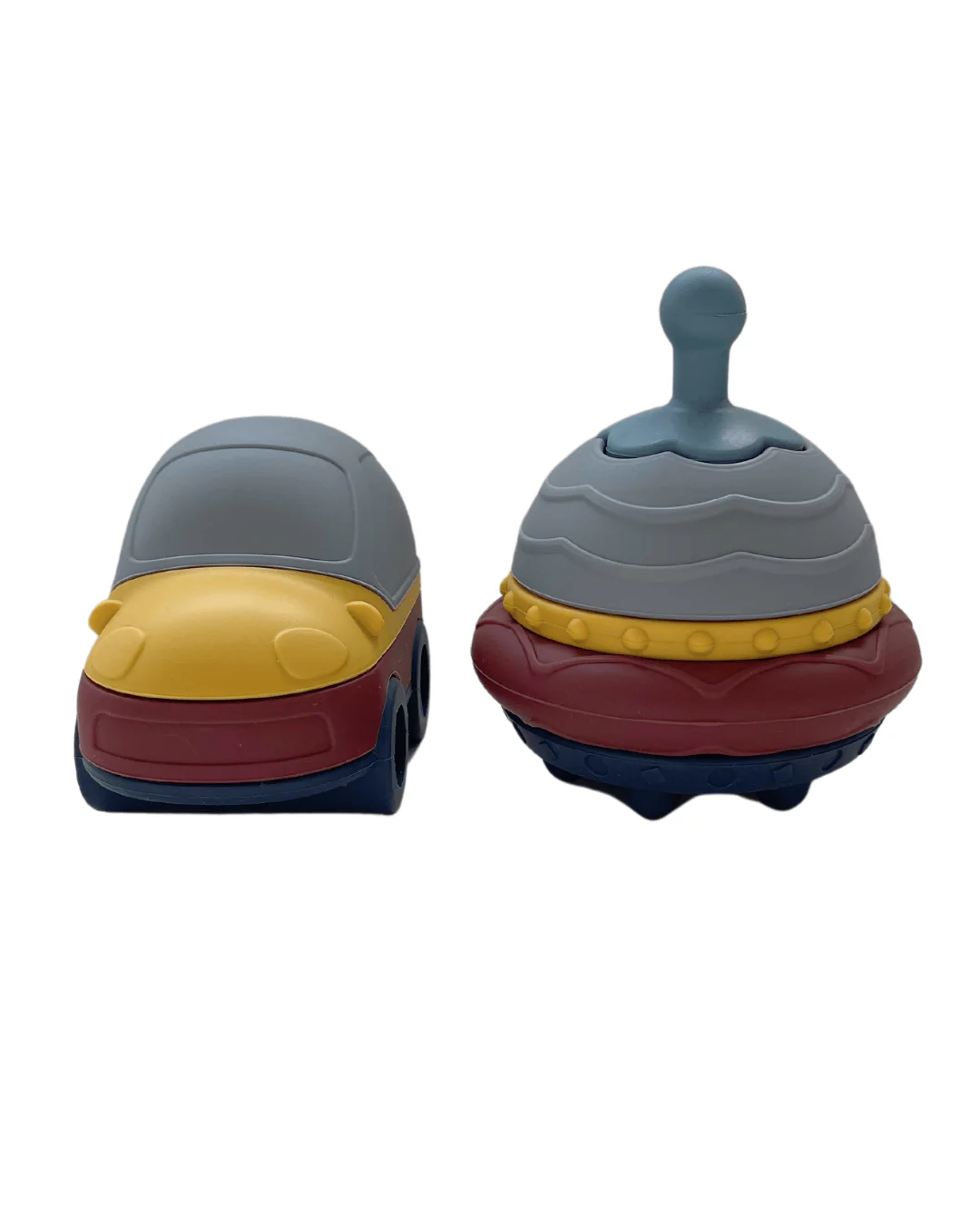 Ontdek het ultieme speelplezier en stimuleer de ontwikkeling van uw kind met onze revolutionaire siliconen speelgoedset, perfect voor kinderen vanaf 6 maanden. Onze set, met een speelse UFO en een dynamische auto, is ontworpen om de zintuigen te prikkelen en de ontwikkeling van uw kleintje te ondersteunen. Ontworpen met het oog op veiligheid en educatie, biedt elke speelgoedcomponent een unieke leerervaring door middel van vormen, kleuren, en tactiele stimuli.