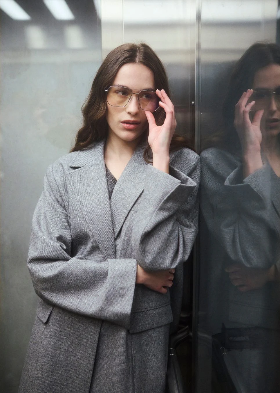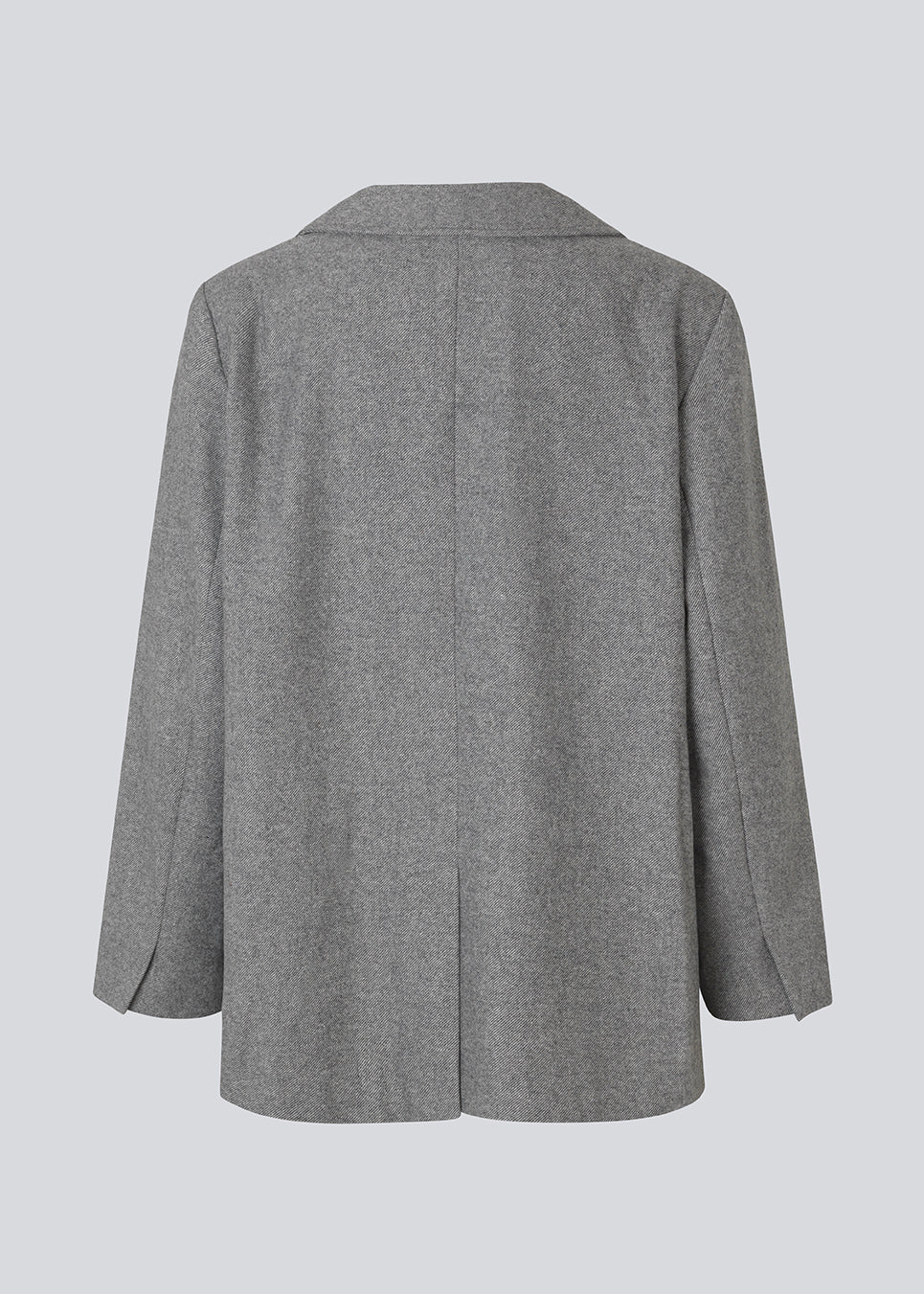Grijze blazer van een wolmix. De Simon blazer heeft een kraag, lange mouwen en twee ruime zakken. Hij sluit met een eenvoudige, zichtbare knoop en is perfect als tussenjas of als warme laag over een T-shirt tijdens de wintermaanden.