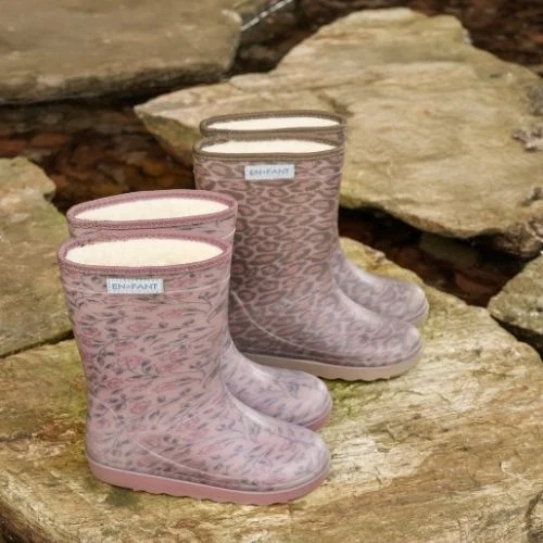 De geweldige oh zo populaire thermo laarsjes van En Fant. Heerlijk warme regenlaars in thermoplastisch elastomeer met off-white wol mix voering voor temperaturen tot -10 graden Celsius. De laarsjes zijn lichtgewicht, hebben een grove zool voor goede grip en een reflecterend Enfant logo op de zijkant. Perfecte kwaliteit!