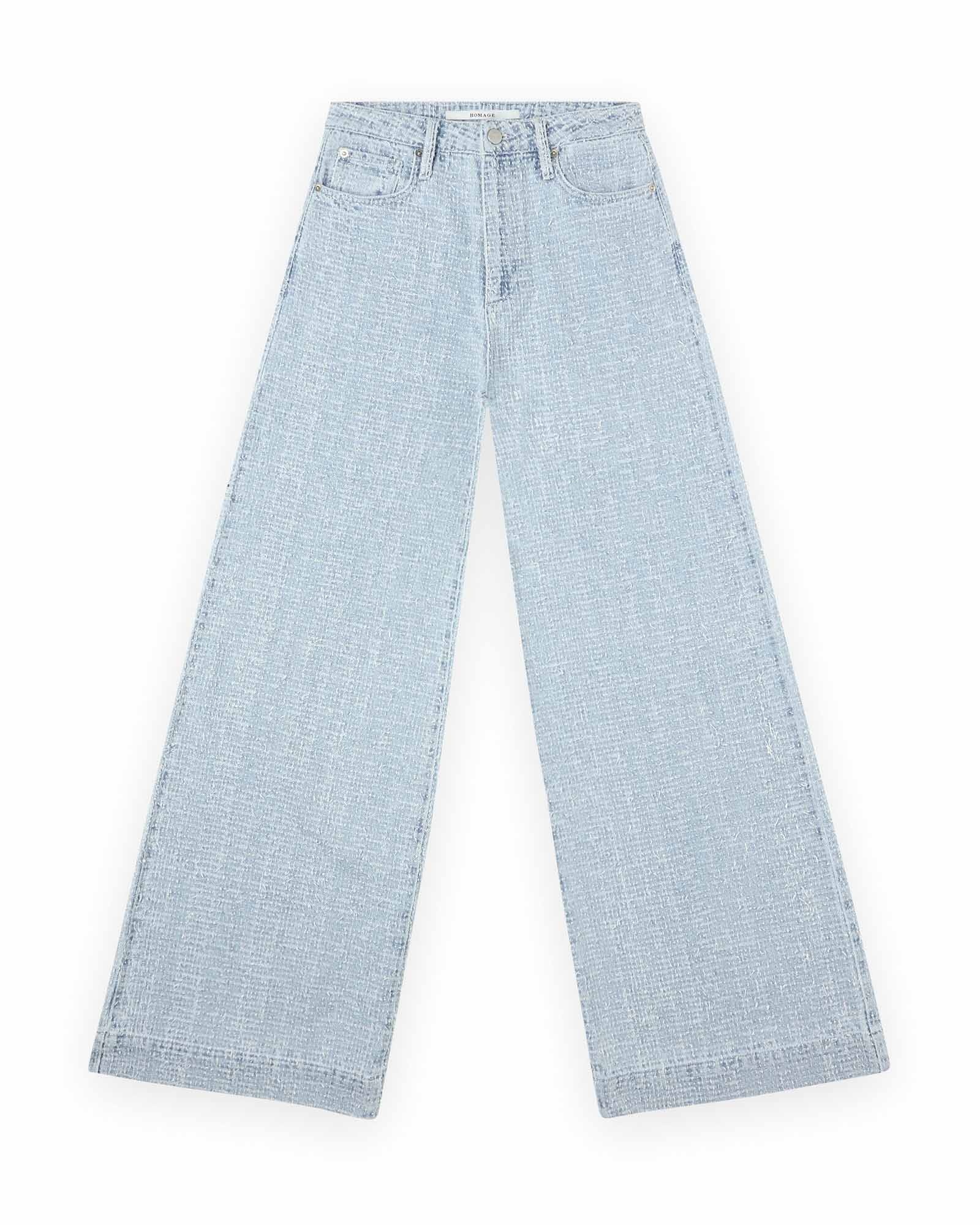 Wide Leg Jeans Whit Allover Distressed - Clear Blue